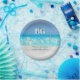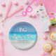Une belle photo d'une plage de sable blanc infusée d'une étoile de mer et d'un graphique à bulles avec une eau cristalline turquoise et un ciel bleu ensoleillé sur lequel apparaissent les initiales des couples nuptiaux.