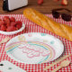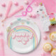 Super Un arc-en-ciel rétro inspiré des plaques de premier anniversaire avec des polices de style des années 70 et des couleurs.