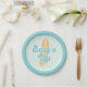 SURF ! Plats d'anniversaire de surf Beach avec plateau de surf turquoise et orange.