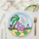 Jolie plaque d'anniversaire de dinosaures rose dessinée à la main pour une petite fête d'anniversaire à thème de dinosaure.