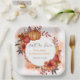 Un évènement mariage/nuptiale à thème automne pour tous. Ces assiettes en papier de forme carré sont ornées d'art d'automne fleuri, fruitier et citrouille et impressionneront tous pour y assister. Idéal pour les mariage, les fiançailles et plus encore. Personnalisez avec des détails pour l'événement de votre choix. Photo orchidart sur Freepik.