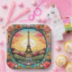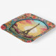 Coucher de soleil parisien Eifel Tower Paris French France Floral Paper Party Plates présente un coucher de soleil de style art déco à Paris avec la Tour Eiffel dans un cadre fleuri et audacieux. Créé par Evco Studio www.zazzle.com/store/evcostudio