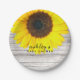 La serviette en papier rustique est dotée d'une texture en bois, d'un grand tournesol et d'une typographie moderne et script personnalisable.