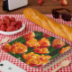 Des tulipes orange vif dans le parc par beau temps dans le jardin. La photo a été prise en juin 2022. L'affiche convient au design d'intérieur.