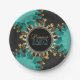 Assiettes En Carton Turquoise Black Gold Fractal Swirl Dîner Invitatio