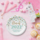 Classe graduation personnalisable de 2022 assiettes en or glamour et confetti turquoise motif et élégant texte de style lettré à la main.
