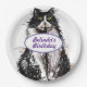 Tuxedo Cat Cats Black White Birthday Party Plate, avec un nom entièrement personnalisable. Conçu à partir de mes aquarelles originales.