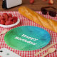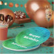 Plaques turquoises et en papier vert, le texte d'anniversaire heureux peut être personnalisé pour tout événement spécial.