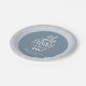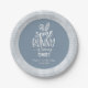 Mignonne plaque de papier de fête d'anniversaire "un lapin". Typographie blanche avec accent d'oreille lapin. Bordure motif en vannerie dessinée à la main, bleu poussiéreux.