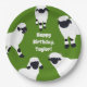 Ces assiettes personnalisées pour fêtes d'anniversaire sont parfaites pour les fêtes à thème de la ferme ou pour lancer une fête pour quiconque aime les moutons. Ces fournitures de fête présentent des illustrations de moutons du Valais BlACTE en blanc et noir contre un arrière - plan vert vif. Ils sont prêts à être personnalisés avec votre propre message en caractères blancs gras.