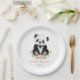 Jolie rose rose floral, rose rose rose fleurs verdure eucalyptus, aquarelle feuillage botanique, feuilles vert sauge, feuille d'or, bébé ours panda, on peut attendre! C'est une fille ! baby shower. Vous pouvez customiser ces assiettes en baby shower sucré avec votre propre texte. Convient pour le baby shower, 1er anniversaire.
