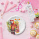 Jolie plaque de papier de fête d'anniversaire avec un perroquet célébrant l'été. Pour les enfants nés en été. Customisez ce produit en ajoutant les informations de votre partie.