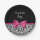 Plaques en papier empreinte de léopard noir et blanc à la mode avec un ruban rose foncé et vivace attaché à un joli arc de cercle. Personnalisez ce motif animal chic et élégant en ajoutant le nom de votre ado. Impression plane, pas ruban réel.