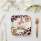 Western premier rodéo saddle up cheval fête d'anniversaire sur plaques personnalisées en papier. Cheval de bébé palomino Brown, une roue, corde et bottes de cowboy, motif de vache, script vintage occidental.