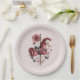 Paper plates with a cute retro style carousel horse. Drawn in Pretty pink colors with fancy flowers.