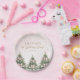 Celebrate your little one’s milestone with these Winter Onederland Pink Bow Pine Trees 1st Birthday Paper Plates featuring silver snowflakes and three festive Christmas pine trees with pink bows. Easily personalize all text and photos for a magical winter birthday celebration.