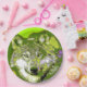 Portrait graphique d'un loup gris impressionnant avec effet vert