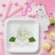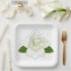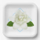 L'assiette en papier de fête est présentée en blanc avec une impression artistique d'une belle fleur de gardénia.