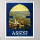 Schönes Vintages Poster von Assisi, Italien, wie von einem Kirchturm aus gesehen. Dies ist ein 32"x40" Beispiel, aber es ist in verschiedenen Größen und Papiertypen erhältlich. Der bedeutendste Bürger war der Heilige Franziskus von Assisi, der katholische Italiener, der die Franziskaner gründete und sein Leben der Christlichen Wohltätigkeit widmete. Er ist sehr eng mit seiner Liebe von Tieren verbunden.