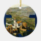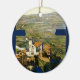 Plakat, das Assisi und die Landschaft als ob von einem Fenster in einem Turm zeigt.