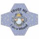 Alter Zauberer mit blauem Kap, der Kristallzauberkugel anschaut.