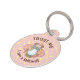 Alter Zauberer mit rosa Umhang, der Kristallzauberkugel betrachtet.