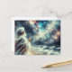 Das Bild zeigt eine Figur stehend mit einem ausgestreckten Arm vor einem lebendigen und farbenfrohen kosmischen Hintergrund, der einem Sternnebel ähnelt. Die Figur scheint ein fließendes Gewand zu tragen, das einen Eindruck von Großzügigkeit oder Weltanschauung vermittelt. Die kosmische Szene ist voll von Blau, Orange und Weiß, was auf die Weite und Schönheit des Raumes hindeutet.