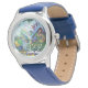 Kinderuhr aus Edelstahl mit blauem Lederarmband