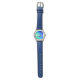 Kinderuhr aus Edelstahl mit blauem Lederarmband