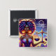 Schaltfläche Horoskop Libra. Ai Art zeigt eine wunderschöne afroamerikanische Frau mit bunten lila Dreadlocks, die eine Waage mit einem Libra-Symbol darüber halten.
