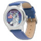 Kinderuhr aus Edelstahl mit blauem Lederarmband
