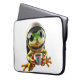 Whimsical green frog in a space helmet cups steaming coffee, blending cosmic charm with cozy cafe vibes. Bold colors and glossy helmet create playful wearable appeal.