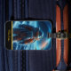 Astronaut in einem Anzug hinter ihm Gepäckanhänger
