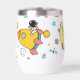 Eine Grafik eines Astronauten im Weltraum: als Planet, Mond, Rakete, Stern, UFO-Symbol, Raumsatellitensymbol, Saturn Planet, Raumschiff und andere.