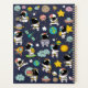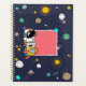 Eine Grafik des Astronauten-Cliparts, Outer Space: Astronaut, der Ballon als Planet hält, eine Rakete, Sterne, UFO-Symbol, Raumsatellitensymbol, Saturn Planet, Raumschiff und andere. Auf Oxford Blue (marineblau) Hintergrund.