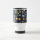 Eine Grafik des Astronauten-Cliparts, Outer Space: Astronaut, der Ballon als Planet hält, eine Rakete, Sterne, UFO-Symbol, Raumsatellitensymbol, Saturn Planet, Raumschiff und andere. Auf Oxford Blue (marineblau) Hintergrund.