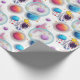 Featuring a cute astronaut floating among colorful planets, stars, and a magical galaxy background, this gift wrap is perfect for space-themed birthday parties.