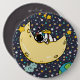 Eine Grafik des Astronauten-Cliparts, Outer Space: Astronaut, der Ballon als Planet hält, eine Rakete, Sterne, UFO-Symbol, Raumsatellitensymbol, Saturn Planet, Raumschiff und andere. Auf Oxford Blue (marineblau) Hintergrund.