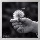 Eine sanfte Hand hält einen Löwenzahn bereit, um ihn im Wind zu zerstreuen. In Schwarzweiß fängt das Bild die Reinheit eines Moments ein, in dem ein Wunsch ins Unbekannte freigelassen wird – einfach, zerbrechlich und voller Hoffnung.