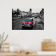 Dies ist ein atemberaubendes Foto eines roten Mini mit schwarz-weißem Hintergrund