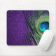 Schöne Pfauenfeder noch Leben. Das weiche Glühen des Fotos hebt die atemberaubenden Farben der Pfauenfeder hervor. Ein sanfter lila Hintergrund ist ein perfekter Akzent.