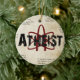 atheistisches Symbol auf einem alten getragenen Hintergrund des braunen Papiers. Zeigen Sie der Welt, dass Sie nicht beschämt sind, ein Atheist zu sein.