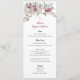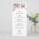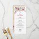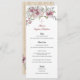 Mauve Blumen und Blätter unterstreichen dieses Menü mit einem natürlichen Holzboden. Ein einfaches Kreuz wird oben platziert. Karo in unserem Schwesterladen Pixieprints.com für alle Ihre Einladungen.
