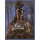"Athenas ewiger Vigil" farbenfrohe Portrait. Athenas intensiver Ausdruck spiegelt ihr Engagement als wachsamer Beschützer wider. Ihre Rüstung symbolisiert Stärke, während die Eule auf ihrer Schulter ihre Weisheit verkörpert. Der Olivenzweig dient als Erinnerung ihres Geschenkes an Athen und symbolisiert den Frieden. Die Spinne fügt eine Schicht Artistik hinzu, die sie mit kreativen Fähigkeiten verbindet. Dieses Bild spiegelt Athenas zeitlose Rolle als Hüterin und Symbol des Intellekts in der griechischen Mythologie wider.