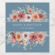 Freuen Sie sich auf diese prächtigen Gaumenmarken, Wein ist einfach ein Beispiel, wählen Sie aus vielen Größen und Stilen! Etikett mit Ihrem Namen und Datum, Event oder Dankeschön, umgeben von exquisitem, handgemalten Blumenstrauß mit Blume und Blattwerk in rot, staubigen Rose, Elfenbein, Pfirsich, trüben Schieferblau, Grau und Salbei, auf einem romantischen, dunkelblauen Hintergrund. Teil unserer Hochzeitskollektion "Ethereal in Dusty Blue".