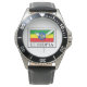 Uhr, Vintage Männeruhr mit schwarzem Lederarmband
