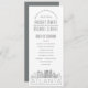 Un programme de mariage décoré sur le thème de la silhouette pour un mariage qui se déroule dans la belle ville d'Atlanta, en Géorgie. Cette carte de programme de mariage présente une illustration stylisée de l'horizon unique de la ville avec son nom en dessous. Il se repose sous vos informations de jour de mariage dans un style ouvert assorti. À l'envers, il y a une couleur gris nickel douce avec plus de détails mariages en texte blanc pour compléter l'avant. Une façon élégante d'accueillir les gens de l'extérieur dans votre ville, tout en leur donnant des informations utiles sur votre série d'événements de cérémonie mariages.