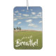 Dieser schöne Lufterfrischer wird nicht nur Ihren Autogeruch verbessern, sondern auch dazu ermutigen, sich hinter dem Rad zu halten. Es ist ein wunderschönes Foto von grünen Weiden mit einem wunderschönen blauen Himmel und der Beschriftung: Atme einfach!