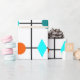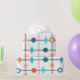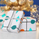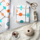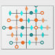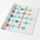 Dieses Verpackungspapier hat Mitte des Jahrhunderts ein modernes Design eines Gitters in schwarzen Linien mit orangen und aquamarinen Kreise und Diamanten.
