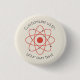 Kundenspezifischer Knopf mit der gebogenen Text- und Atomstruktur, ideal für irgendein themenorientiertes Ereignis der Wissenschaft.